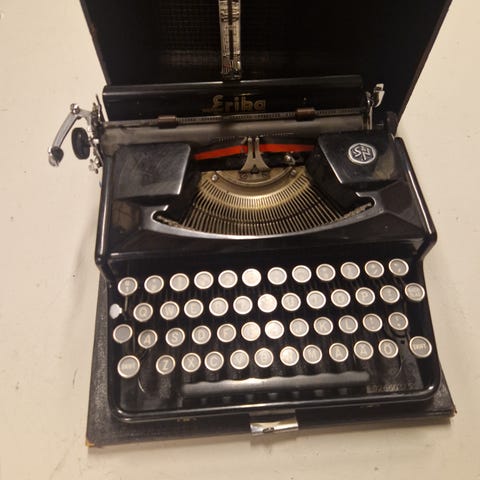 Det är en rejäl maskin som byggdes för att hålla i generationer. Kanske behöver den ett nytt färgband för att ge perfekt svärta, men i övrigt är den redo för nya äventyr.