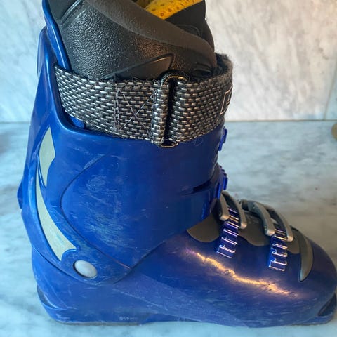 Nordica slalompjäxor i grått och blått. Pjäxorna har fyra justerbara spännen och kraftigt kardborreband upptill för stabil passform. Stl 26-26,5 vilket ska motsvara stl 40-41