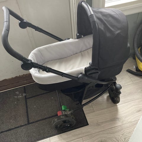 Barnvagn med liggdel och bilbarnstol grå och svart