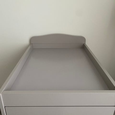 Skötbordet har bra förvaring med två hyllplan och en rymlig, utdragbar låda.