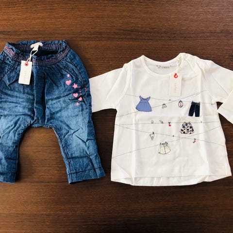 Esprit byxor och tröja för barn, nya, storleken är 68, kommer från djur och rökfritt hem, finns i Nacka, kan skickas mot fraktkostnaden.