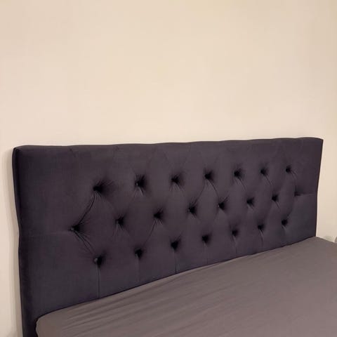 Sänggavel i svart konstläder med knapptuftad design. Passar till säng med standardbredd. Mjuk stoppning ger bekvämt ryggstöd vid sittande i sängen. Neutralt utförande som fungerar i olika sovrumsmiljöer.
