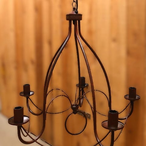 Taklampa i form av smideskrona i brun metall. Lampan har flera armar för ljuskällor och monteras i taket med takfäste. Passar exempelvis i vardagsrum, matsal eller hall där man önskar en klassisk smidesstil. Ljuskällor och eventuell elkontakt framgår inte av bilderna och kan behöva kompletteras separat.