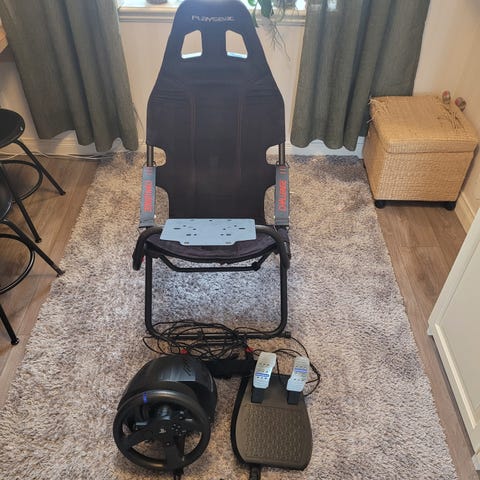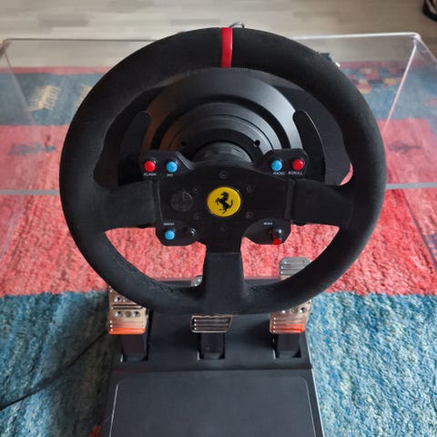 Thrustmaster tx racing wheel med tillhörande pedaler och f1 ratt och th8a växelspak och en Saitek AV8R-01 flygspak. Flygspaken passar till PC och ps3. Dom andra grejerna fungerar till Xbox och PC. Fungerar inte priset så kom med bud.