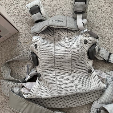 Babybjörn Harmony bärsele i svart meshmaterial. Bärselen är utformad för att ge stöd åt både barn och bärare, med vadderade axelband och midjebälte för jämn viktfördelning. Luftigt meshtyg ger god ventilation runt barnet. Selen kan justeras med spännen och remmar för att passa olika kroppsstorlekar och barnets växande längd. Levereras med originalförpackning och bruksanvisning enligt bild.