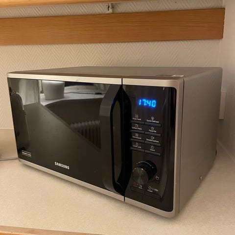 Samsung GE87MC mikrovågsugn i stålutförande.