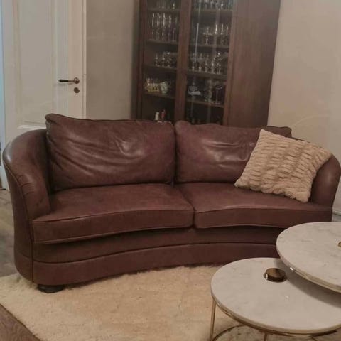 Tresitsig soffa helt i skinn i väldigt bra skick. Varje sits kan fällas steglöst till önskad lutning.
