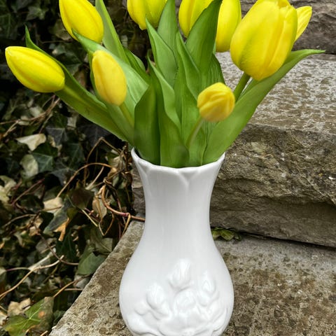 Söt form i slipad Kristall med vacker böljande ovankant. Den utsvängda formen är inte bara fin utan gör att buketten formar sig fint.