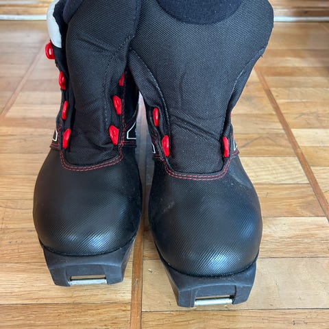 Två par längdåkningspjäxor för barn. Fodrade. Använda fåtal gånger. Se bild för vilken sorts bindning.