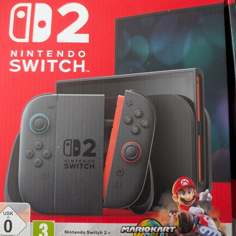 Nintendo Switch spelkonsol. Konsolen kan användas både som bärbar enhet och ansluten till TV via dockningsstation. Joy-Con-handkontroller kan användas fastsatta på konsolen eller fristående. Passar för spel ensam eller tillsammans med andra, både hemma och på resande fot.