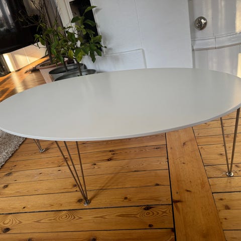 Finns dock några små märken på sidorna, (mest märkbara är märket på ena kortsidan som finns på bild) men bordsytan är bra.