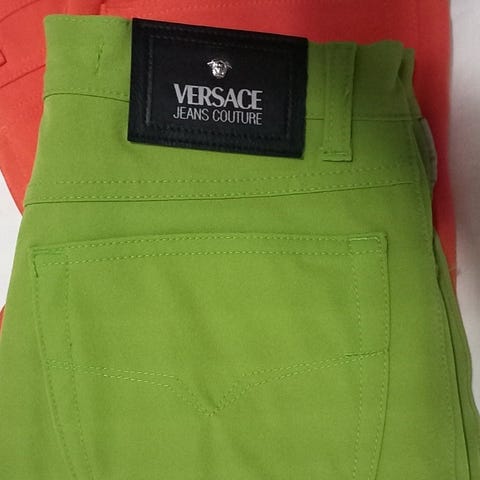 Versace Collection jeans för herr i blå denim. Byxorna har midjestorlek W31 och anges som storlek S. Då sits som slimfit. Klassisk femficksmodell med kontrastsömmar och dekorativ broderad detalj på ena bakfickan. Tillverkade i denimtyg som ger ett stadigt men bekvämt plagg för vardagsbruk.