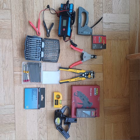 Säljer ett komplett paket med kvalitetsverktyg för installation, montage och precisionsarbete.