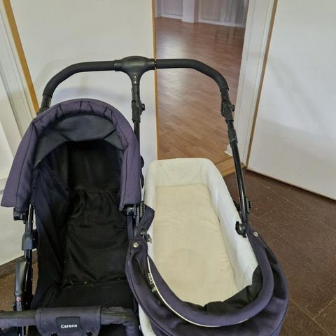 Barnvagn säljes i fint skick. Överdelen kan lyftas från underredet.