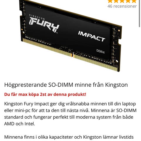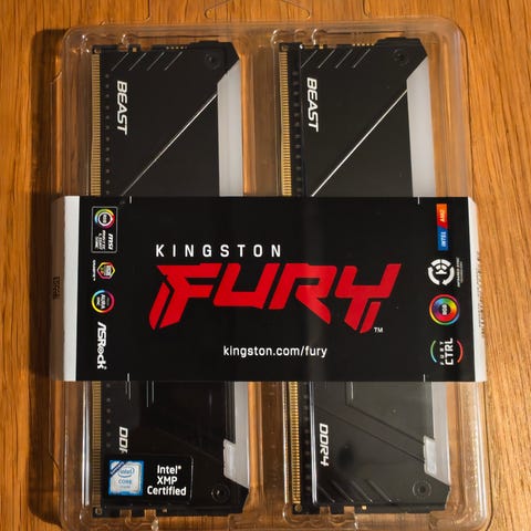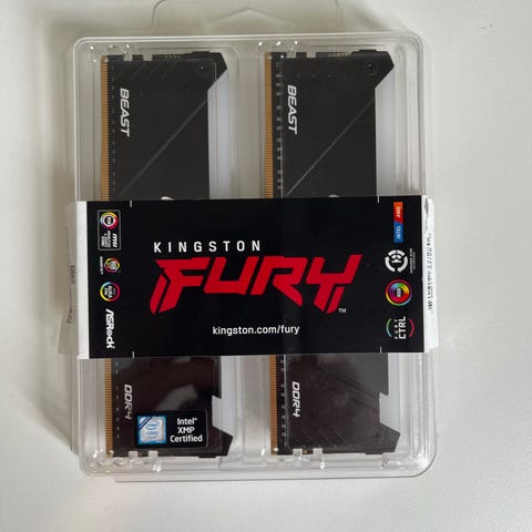 Kingston Fury DDR4 RAM-minne, totalt 16GB fördelat på 2 moduler om 8GB vardera. Färg svart. Minnet är Intel XMP-certifierat och avsett för stationära datorer med DDR4-stöd. Passar som uppgradering eller ersättning av befintligt arbetsminne i kompatibla system.