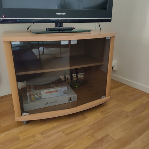 Säljer både soffbord (svart) och tv bänk (mörkt trä) för 1000kr tillsammans.