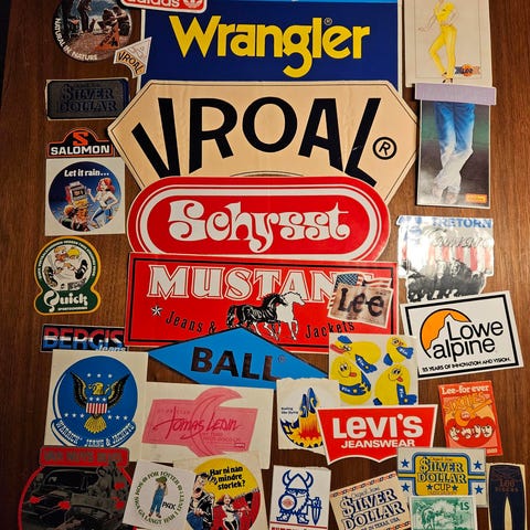 Samling med vintage och äldre blandade pins och knappar i olika storlekar och färger. Motiven inkluderar bland annat resmål, evenemang, logotyper och figurer. Pinsen är huvudsakligen i metall med emaljerade motiv, och knapparna är runda med tryckta motiv och nålfäste på baksidan. Lämpliga för den som samlar på pins och knappar eller vill använda dem som dekoration på kläder, väskor eller liknande.