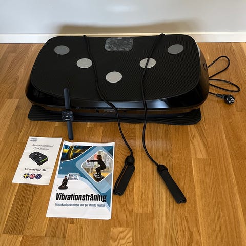 Vibrationsplatta med fjärrkontroll och träningsband svart