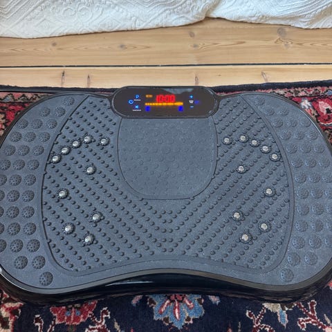 Vibrationsplatta för hemmaträning. Oklart vilket märke eller modell. Inköpt på Weightworld för några år sen.