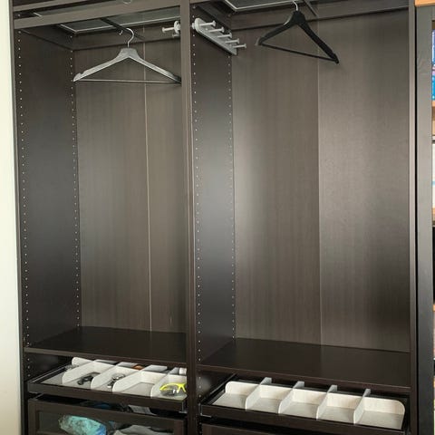 Säljes nedmonterad till viss del (garderobsstommar med dörrar, hyllplan och lådor lösa).
