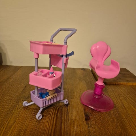 Barbie frisörstol rosa plast 80-90tal