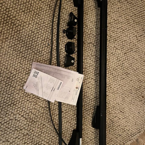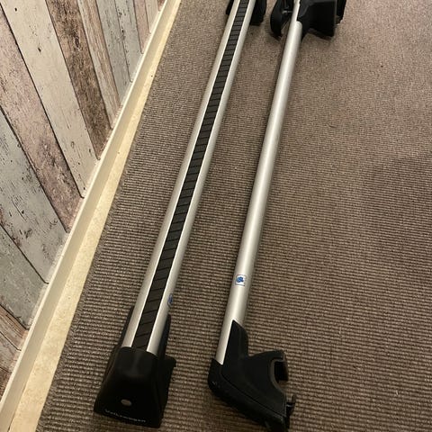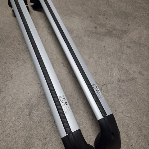 Består av två tvärbalkar med infällda skenor för infästning av tillbehör, inkl ”sliding bolt” och orginal monteringsnyckel.