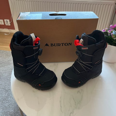 Kids Burton Grom snowboardboots. Uppmätta till ca 21 cm i foten, anges till US 3.5 / EU strl 34. Knappt använda. Känns och ser ut som nya, för små för oss. Lika lätt system som boa att hantera eftersom snören saknas. Finns i Norra Ängby eller skickas.