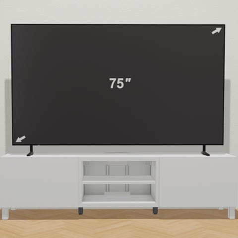 Vit TV-bänk med skjutdörrar i glas med hyllplan bakom dörrar. Köpt på sittymöbler
