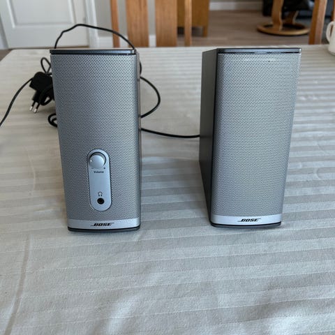 Aktiva högtalare med fint ljud som kan användas till bland annat skivspelare, tv och bluetooth med dess olika ingångar. De är i fint skick, inga synliga eller hörbara skavanker. Fjärrkontroll och högtalarkabel ingår. Finns att hämta i centrala Kalmar.