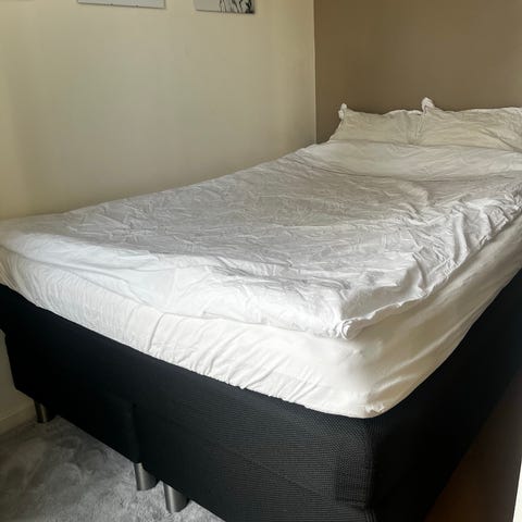 Säng, madrass, täcke och kuddar