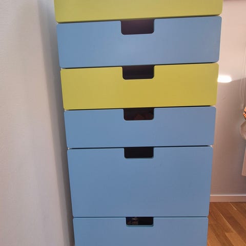 Förvsringsmöbel eller byrå från Magis. Lådorna snurrar helt runt sin axel. Orange plast och på fyra hjul. OBS! Endast 9 lådor, den översta saknas. Några repor på lådor, syns att den är använd men väldigt snygg ändå!