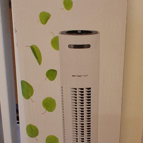 Vertikal fläkt som tar liten golvyta och passar för användning i hem eller på kontor. Enheten har kontrollpanel på ovansidan med av/på-knapp, timerfunktion och knappar för fläkthastighet och läge. Tornfläkten ger riktad luftcirkulation och kan placeras i rum där extra ventilation önskas.