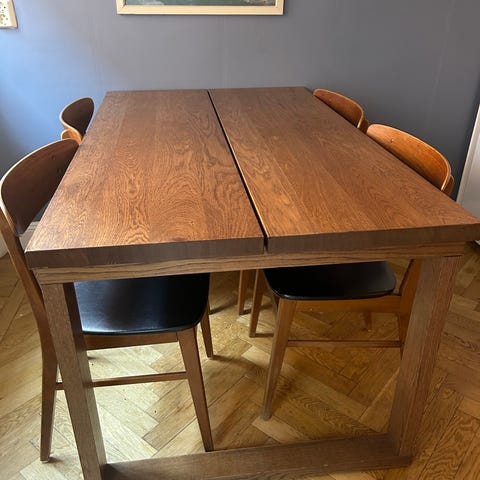 Vi köpte bordet för tre år sen på IKEA för 5995 kronor. Detta bord har vi vardagsrummet och därför har det inte använts särskilt ofta, därför i bra skick.