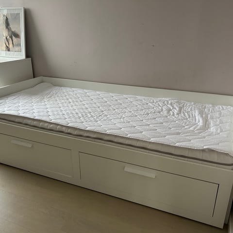 Madrass ÅFJÄLL ingår, Fint skick, haft en bäddmadrass ovanpå hela tiden men finns lite färg på en långsida, se bild.