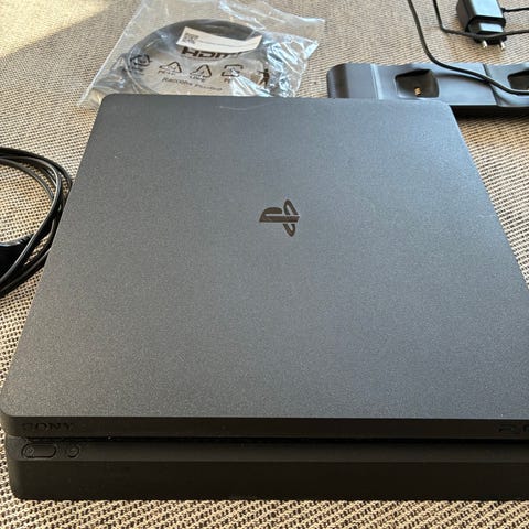 Sony PlayStation 4 Slim spelkonsol svart med två handkontroller och spel