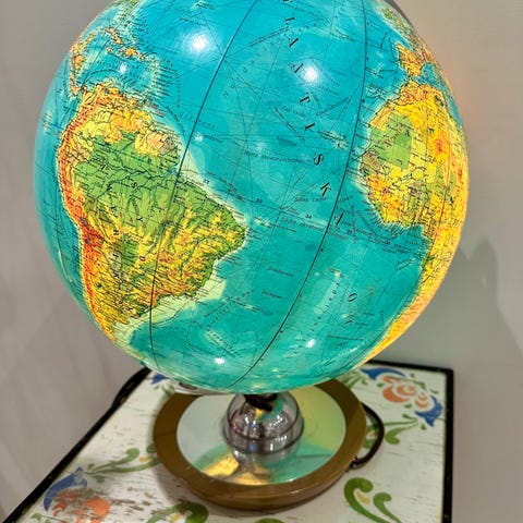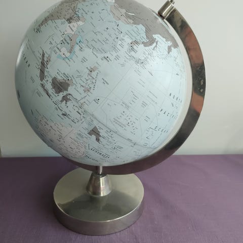En liten jordglob där allt står på kinesiska.