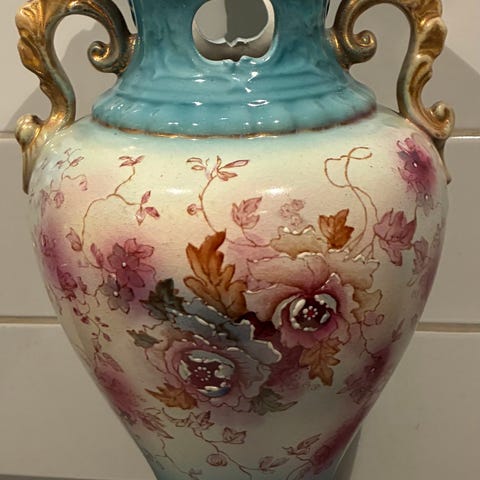 Vintage ölsejdel / kanna med lock keramik flerfärgat blommotiv
