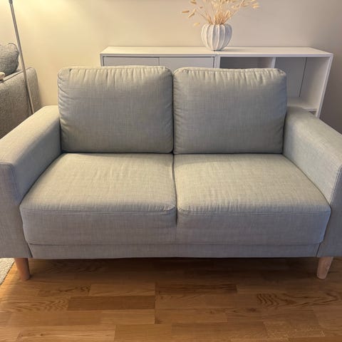 Säljer en stilren och riktigt bekväm LANDSKRONA 2-sitssoffa i den fina klädseln Gunnared ljusgrön med träben. En perfekt “lagom stor” soffa som känns lyxig i uttrycket men ändå lättplacerad i rummet. Tidlös design med fina detaljer och skön sittkomfort.