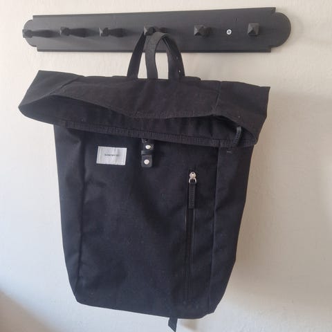 En knappt använd mörkblå ryggsäck från Sandqvist