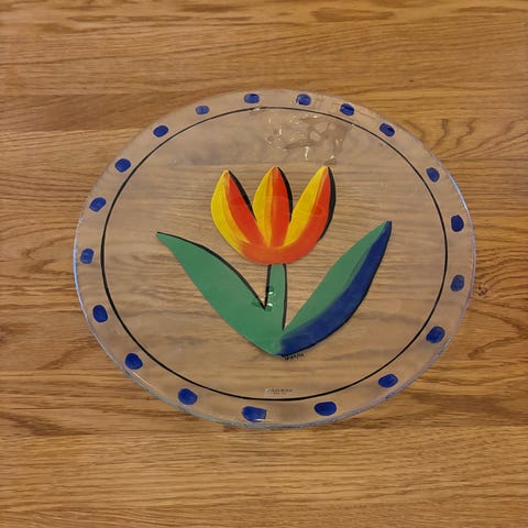 Vacker stor vas designad av Ulrika Hydman-Vallien för Kosta Boda. Vasen är av modell Tulipa med modellnummer 40229, höjd 34 cm och bredd ca 25 cm. Vasen är signerad och undertill även graverad av konstnären. Denna modell tillverkades och målades för hand med färgglad dekor och blommotiv. Serien fanns i produktion fram till 2011. Vasen är i mint condition då den stått nedpackad på en vind i ca 20 år.