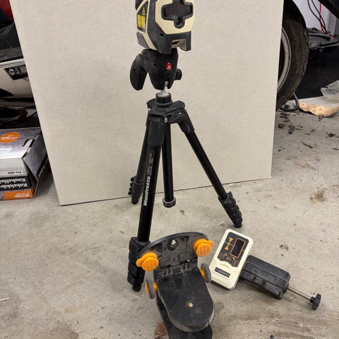 Linje laser med laserlinje. Enheten projicerar tydliga horisontella och vertikala linjer för nivellering och uppriktning vid till exempel montering, inredningsarbete och renovering. Säljs tillsammans med förvaringsväska och fäste/tillbehör enligt bild.