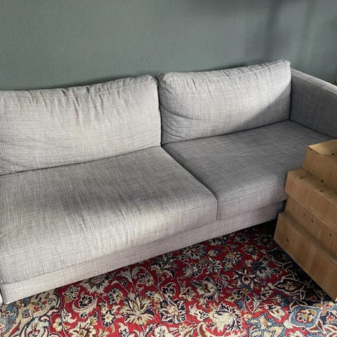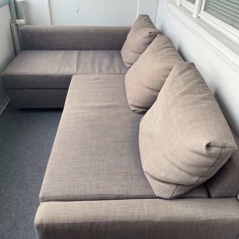 Soffa med schäslong i bra skick med inge slitage, på 2,65meter x 1,6 meter samt ny städad. Vi är tillgängliga att frakta för en liten extra kostnad.