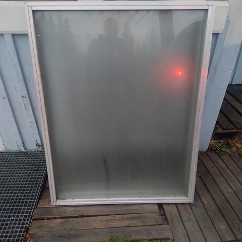 Fast fönster med vit trä insida och aluminium ram på utsidan. Karmyttermått 117x117 cm.