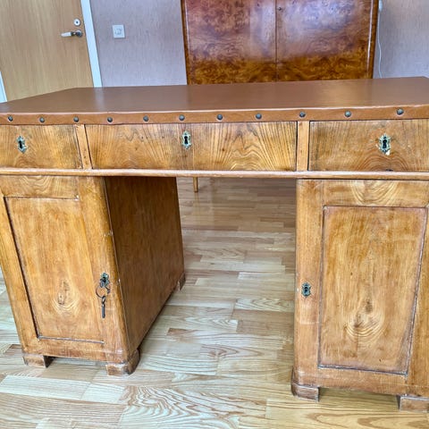 Höjd 72,5, djup 65, bredd 125 (allt i cm). Mindre skada efter skrivbordslampa (se foto).