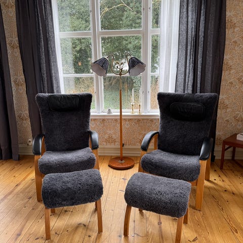 Fåtöljen finns i Kalmar. Kan fraktas till Stockholm om överenskommet med en fraktkostnad.