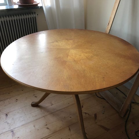 Visst slitage då bordet är från 90 talet (har aldrig själv tänkt på det utan det är mer en del av bordets karaktär). Se bilder.