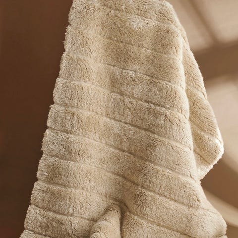 Mattan har en mjuk, lurvig struktur med ett diskret rutmönster.