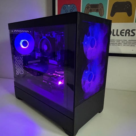 HP Omen stationär dator i svart utförande. Datorn har tornchassi med sidopanel som visar intern komponentlayout, inklusive dedikerat grafikkort ur Nvidia GeForce RTX-serien. Fronten har belyst Omen-logotyp. Lämplig som stationär dator för spel, arbete eller allmän användning beroende på installerad hårdvara och konfiguration. Klarar 250fps på max settings i cs och 250fps på lägsta settings i fortnite.