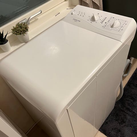 Electrolux toppmatad tvättmaskin med olika tvättprogram och digital display. Maskinen har en kompakt design som passar för mindre utrymmen. Den har använts i en sommarstuga och är därför varsamt använd.