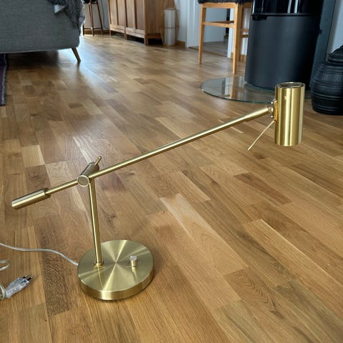 Ljusne bordslampa / skrivbordslampa i rå mässing från Watt & Veke. Storlek H50-85 Ø20 cm. Passar till glödlampa E27, Max 25 watt.